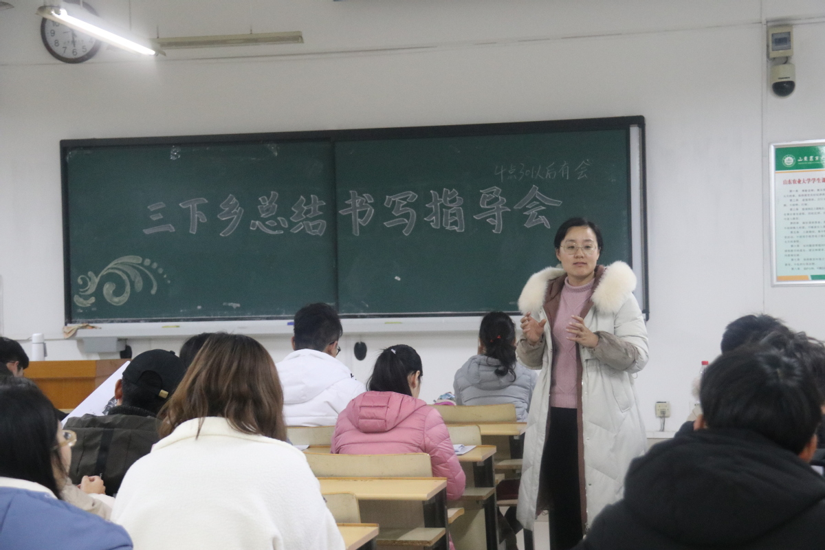 12月10日下午,农学院于综合楼S311教室举行三下乡总结报告撰写指导会,团委书记尹昌美,辅导员程璐、许超出席本次会议,暑期三下乡各团队参加培训。 会议伊始,实创部部长陈叶指出了三下乡总结报告中存在的问题,并以李爽团队三下乡的总结报告为范例,讲解了报告的书写内容与方式。随后,程璐老师指出总结报告书存在的不足,如内容过于笼统、千篇一律等问题,并要求各队在总结时认真思考为什么实践、实践中发现的问题,及实践感悟等。尹昌美老师则就总结报告的组成,如团队简介、活动内容、收获体会等进行了强调,并以杨杰、李爽团队的总结报告为例,指出在保证总结报告质量的同时,要将团队最精彩的经历记录下来,着重写出区别于其他团队的特色。 最后,尹老师询问了同学们仍存留的疑问,并一一解答。