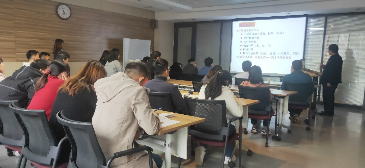 ——2021年第二期“党建+学术沙龙”暨知名专家座谈会 2021年3月26日下午,农学院作物遗传育种研究生第一党支部携手小麦知行社在国重楼2楼会议室组织开展第二期“党建+学术沙龙”活动。知名小麦育种专家李斯深教授应邀作报告《小麦育种的实践与思考》。 李斯深,中共党员,山东即墨人,农学博士,教授,主要研究方向为小麦种质资源和新品种选育、小麦功能基因分析、生物进化与多样性。主持科研课题近20项,包括国家科技攻关计划、科技支撑计划以及自然科学基金、国家农业结构调整和山东省科技厅项目等多项课题。育成山农17、泰农18 、山农21等8个小麦新品种。作为主要完成人,获国家技术发明一等奖1项、山东省政府科技重奖一等奖1项、国家图书奖1项、全国优秀科技图书奖暨科技进步奖(科技著作)一等奖1项,山东省科技进步奖3项。 会议伊始,支部书记赵岩同志表示对李斯深教授拨冗授课的感谢,随后李斯深教授为大家讲述现代化农业的发展。李斯深教授从育种的定义、育种的方法、育种的目标及体会和思考四大方面对小麦育种展开了详细且系统的讲述,他强调要深入了解生产上的问题,通过思考、甄别和提高,明确育种目标。对待新型的技术,应该在适用的环境下加以运用,并指出通过生产实践才能准确鉴定品种的好坏,分享了自己20多年小麦育种的体会与思考:育种要敢于取舍,有长远的眼光,要有勇于攀登不墨守成规的创新精神。 本次活动中李斯深教授对自己20多年育种经验做出高度总结,传递育种人的执着精神与宝贵科研经验,引导同学们向身边的育种家学习,身体力行把理论知识投身到乡村振兴,同学们受益良多。