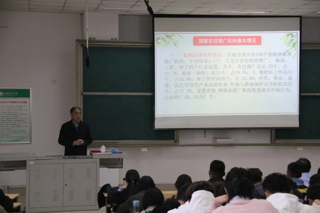 11月24日下午,农学院于综合楼N502举办第一期齐鲁站长论坛,论坛由农学院农学专业主任刘鹏主持,邀请山东省农业技术推广总站站长高瑞杰莅临主讲,全体公费农科生到场聆听。