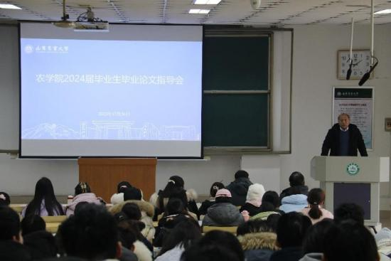 农学专业主任刘鹏为大家做毕业论文写作指导,建议同学们在思想上重视,尽早行动;注意论文写作的规范性,做好实验数据的统计整理;提高内容质量,严谨学术不端。学院教务秘书仵允锋围绕毕业论文和毕业实习具体安排为毕业生做介绍,提醒大家随时关注毕业论文提交等关键时间点,保质保量完成毕业论文和实习等相关工作毕业生辅导员李建就学院近期招聘会安排、假期离校请假流程、假期安全、学分互认工作等做说明。
