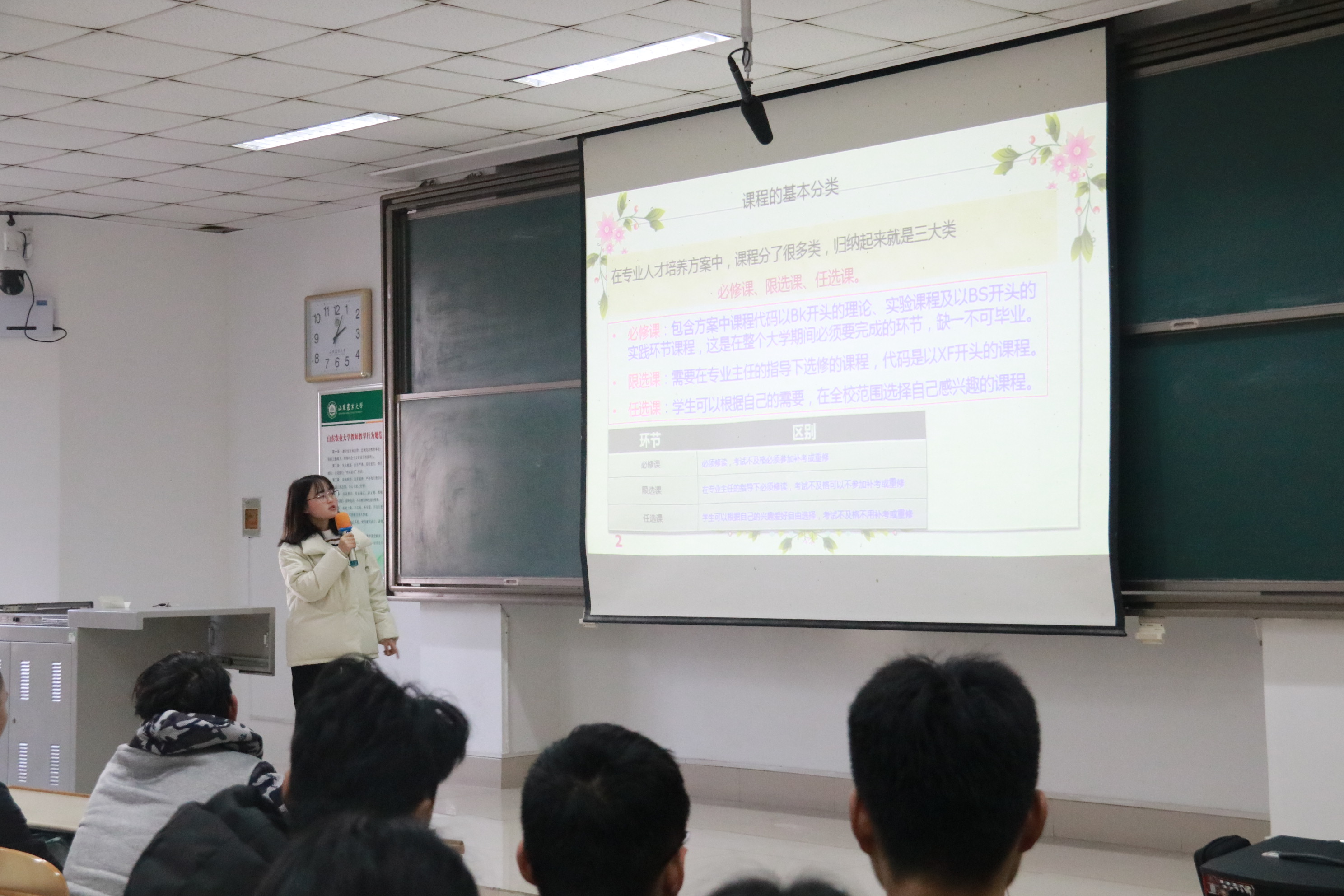 12月28日下午,农学院于综合楼N104举行19级新生选课指导培训会,19级全体成员到会聆听。 本次培训由学习部王荣晓主持,以PPT形式围绕课程基本分类、各类课程分值、选课原则、选课环节说明、选课步骤及重修报名流程等六个方面展开讲解。王荣晓强调要注意选课时间的安排,在规定时间内完成选课操作。随后,她说明了在使用报名系统时的各项注意事宜,并耐心解答了在场同学对选课的疑惑。最后,王荣晓指出,时光易逝,希望19级同学不盲从,不跟风,根据自身兴趣爱好、结合自己对未来的规划认真参与选课。 19级作物学9班徐化云表示:“本次培训使我受益匪浅,不仅让自己更好地了解了选课流程,同时也对日后将要学习的课程有了进一步的认识。”