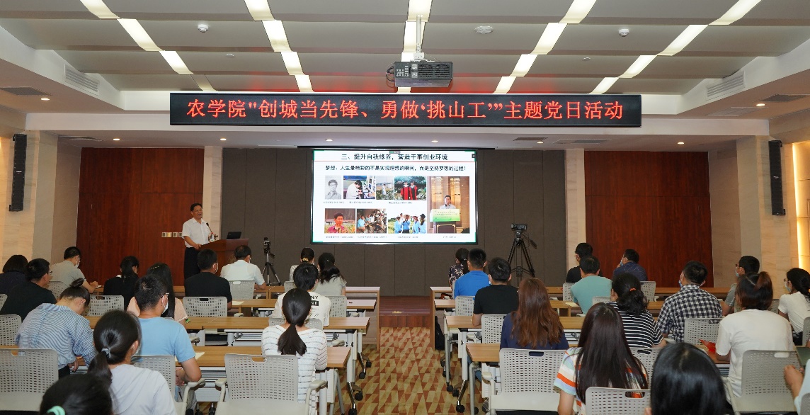 7月7日下午,学院党委开展“创城当先锋、勇做‘挑山工’”主题党日活动,以讲党课形式庆祝党的99岁生日。农学院党委副书记、院长孔令让教授以《聚焦国家粮食安全,解决农业关键科学问题》为题为青年师生党员讲党课,鼓励引导青年师生发扬永不懈怠、一往无前的泰山“挑山工”精神,积极投身一流学科建设,勇挑强农兴农重担。