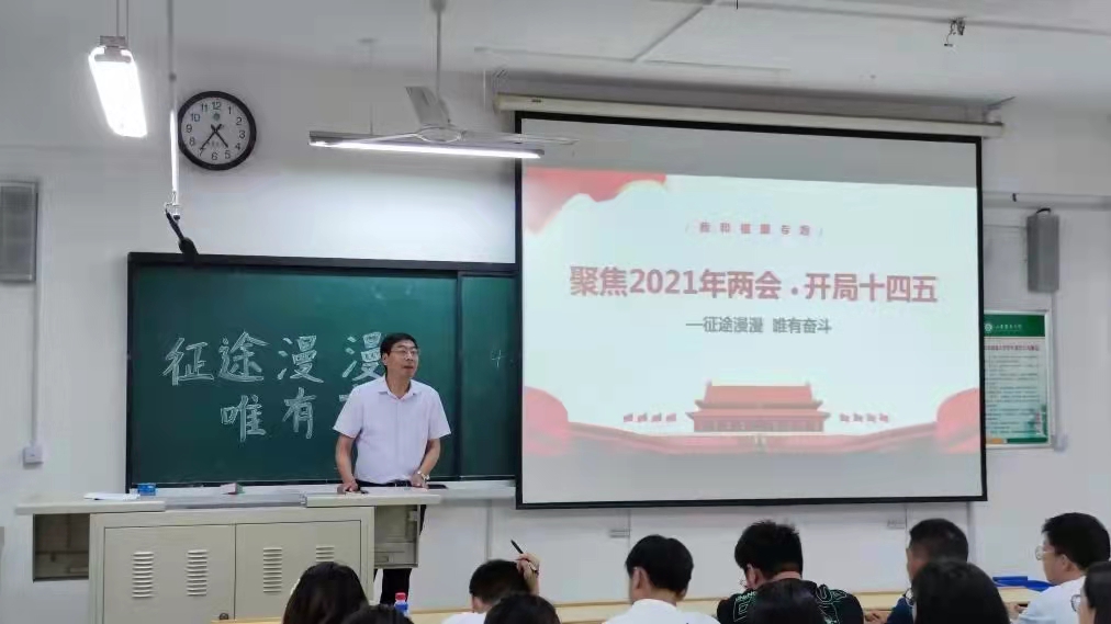 5月26日下午,农学院党委书记崔志峰在综合楼s215为同学们上了一堂形势与政策思政课,与同学们畅谈两会要点,激励大家树立远大理想。