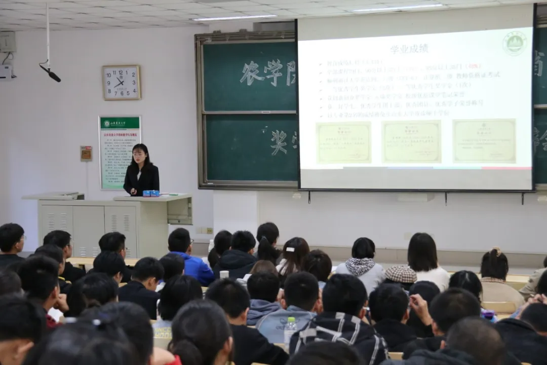 10月23日上午,农学院于综合楼N201举行国家奖学金、省政府奖学金评选答辩会,农学院团委书记尹昌美、辅导员程璐出席本次活动,20级部分学生到场观摩学习。