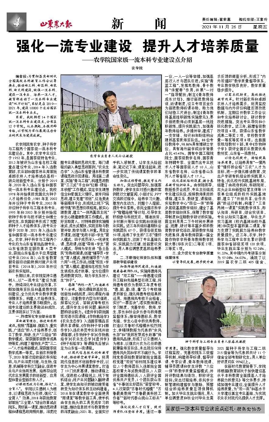 校报专版报道beat365在线体育官网一流专业建设点情况