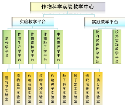 中心实行校、院两级管理、独立运行体制,统筹各类实验资源,实现资源优化管理。实行五统一的管理模式,即统一制定规章制度、统一安排教学任务、统一协调教师资源、统一管理仪器设备、统一执行考核标准,使中心教学的组织和管理真正实现一体化。通过整合相关的教学和科研实验室优质资源,搭建了遗传学、作物生产学、作物育种学、作物种子学、中药资源学5个实验教学平台和两个实践教学平台。根据实验室功能分配负责人,负责实验室开放、安全、卫生及设备管理等工作,参与实验中心规划和建设。中心按功能分区建设和管理,做到分工明确,责任到人。